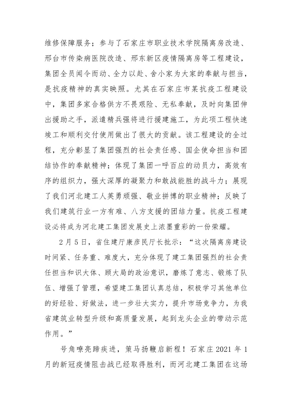 永葆初心担使命 战疫必胜凯歌传河北建工集团发扬抗疫精神承建防疫工程纪实