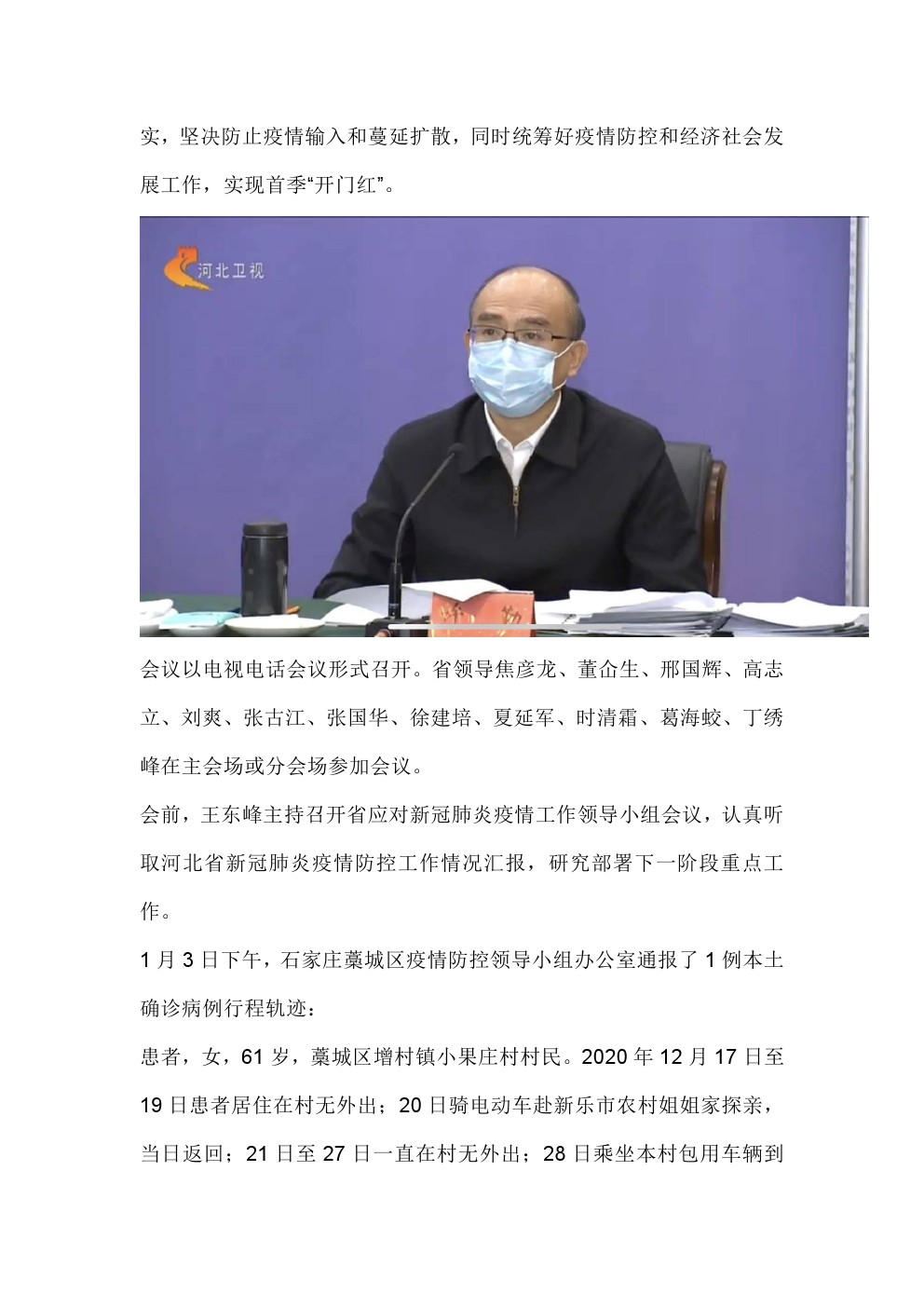河北省委书记王东峰:坚决防止疫情扩散蔓延